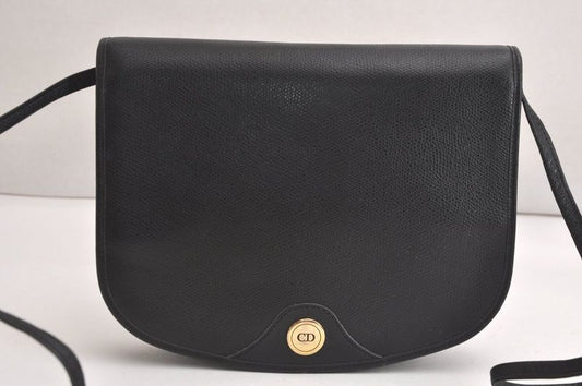 Christian DIOR Vintage Shoulder Crossbody Bag Leather Black CD 4353n