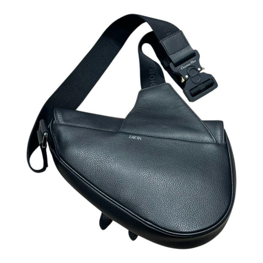 DIOR ⑤ 06-bo-0139 Leather Saddle Bag Unisex Black ONE SIZE