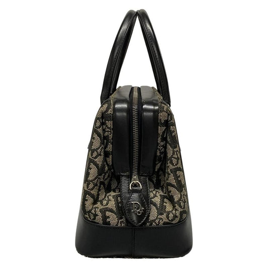 Dior/christian Dior Boston Bag Trotter Black And Gray Beige Leather