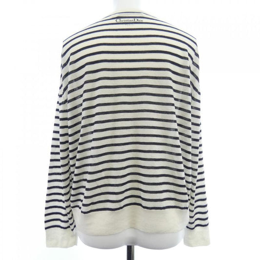 Christian DIOR Knit Long Sleeve Cardigan Long Length Piping Top Cardigan Cotton