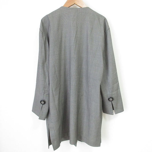 Christian DIOR Vintage Plaid Patterned Winged Mid-length Wool Collarless Jacket