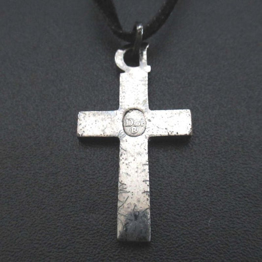 Good Christian DIOR Cross Choker Necklace Silver Color And Black Ladies Used