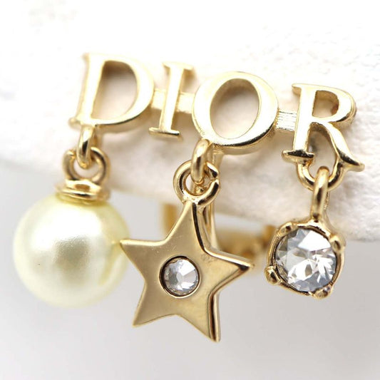 Christian DIOR Earrings Tribal Earrings CD Logo Faux Pearl Rhinestone Star