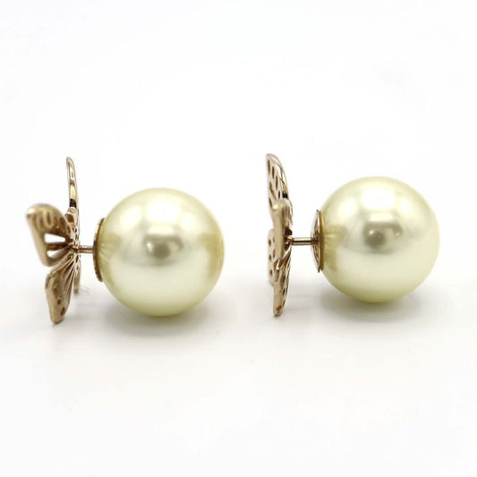 Christian DIOR Earrings Butterfly Faux Pearl Tribal Accessories With Box H13740