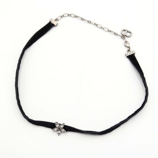 Christian DIOR Choker Star Rhinestone CD Velour Accessories Black Ladies With