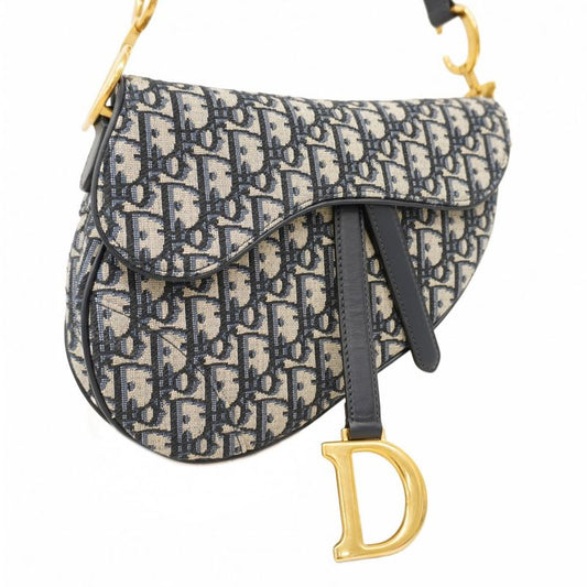 Christian Dior Handbag Oblique Saddle Canvas Leather Navy Gold Hardware 2way