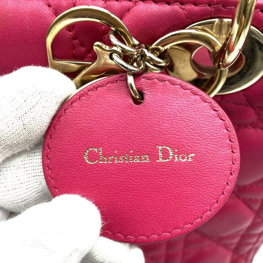 DIOR Lady Dior Medium 2way Shoulder Bag Handbag Leather Pink Gold Hardware