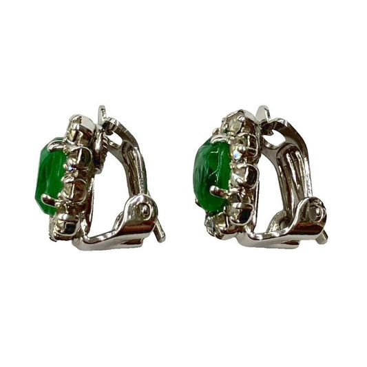 Christian DIOR Colored Stone Rhinestone Earrings Accessories Silver Color Green