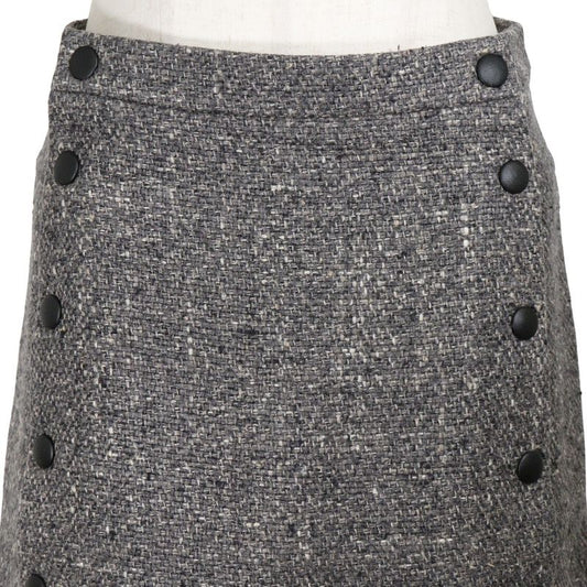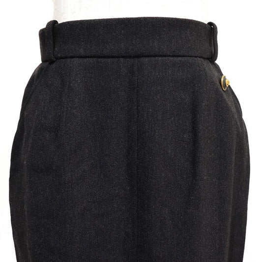 Chanel Coco Mark Back Button 93A P02440 Wool Charcoal Gray Women's Skirt