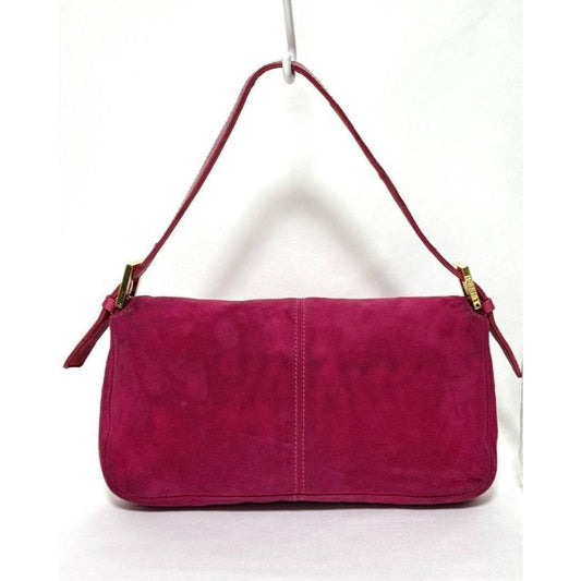 FENDI Mamma Baguette Pink Suede Gold Glitter Flap Shoulder Bag Purse