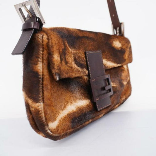 FENDI Mamma Bucket Baguette Calf Hair Pony Print Brown Shoulder Bag