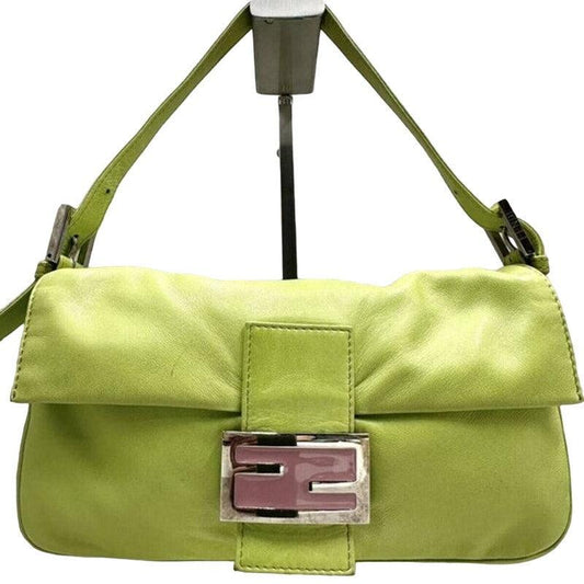 FENDI Mamma Bucket Baguette Green Lambskin Flap Bag Purse
