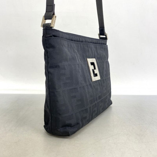 Fendi Shoulder Bag Zucca Nylon Canvas Black Silver Hardware Ladies