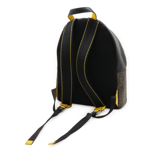 Fendi Zucca Pattern Backpack Sac PVC Leather Khaki Brown Black Yellow Silver