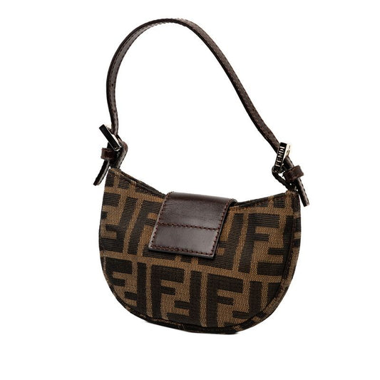 Fendi Zucca Mini Croissant Mini Pouch Handbag 26673 Brown Canvas Leather
