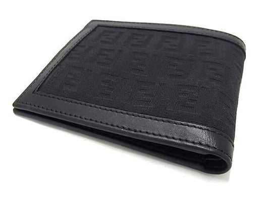 Fendi Zucca Pattern Zucchino Canvas And Leather Bifold Wallet Black