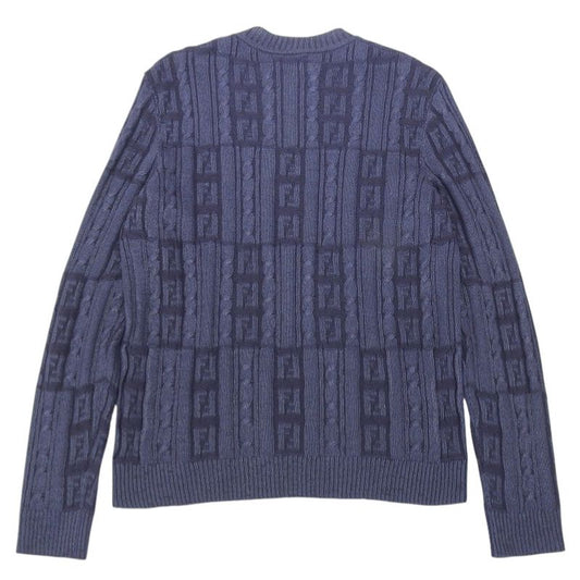 Fendi 2024item Summer Wool Zucca Pattern Crewneck Knit 48 Men's Navy 24AW