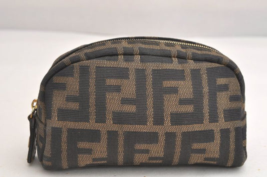 Fendi Zucca Pattern Vintage Pouch Wallet Canvas Leather Brown Black 4021n