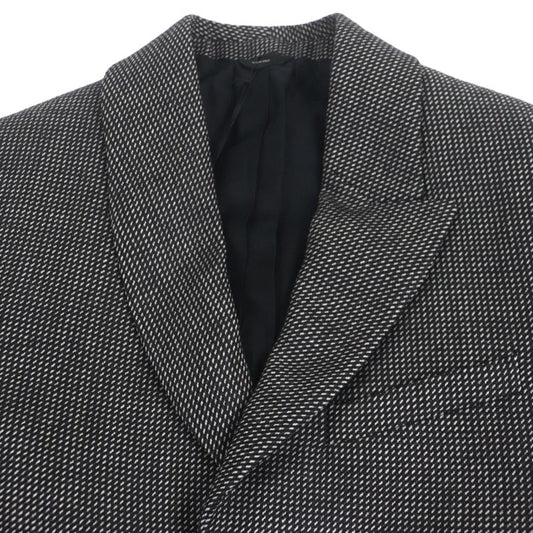 Fendi Ff0289 100% Wool Woven Pattern Logo Buttons Single Chester Coat Black 44