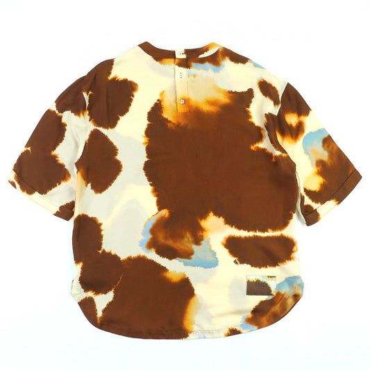 Fendi 2022ss Fy1200 100% Silk Logo Patch Allover Design Crew Neck Short Sleeve