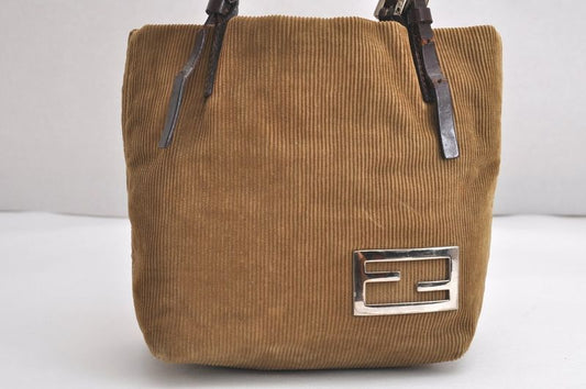 Fendi Vintage Shoulder Handbag Purse Corduroy Leather Brown 4351n