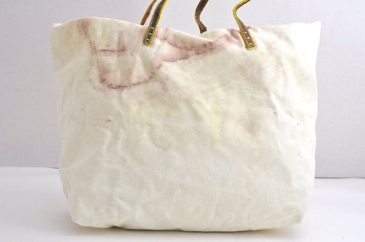 Fendi Vintage Canvas Leather Python Motif Shoulder Tote Bag White 4365n