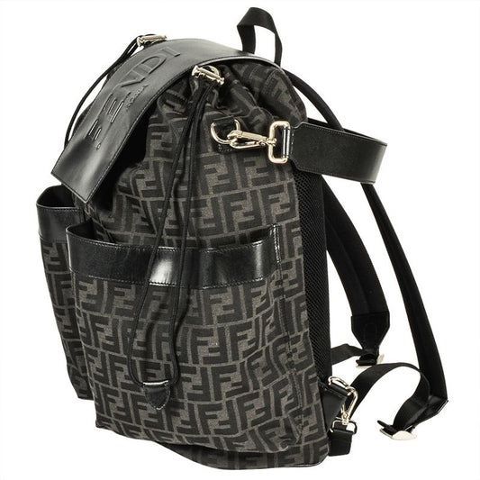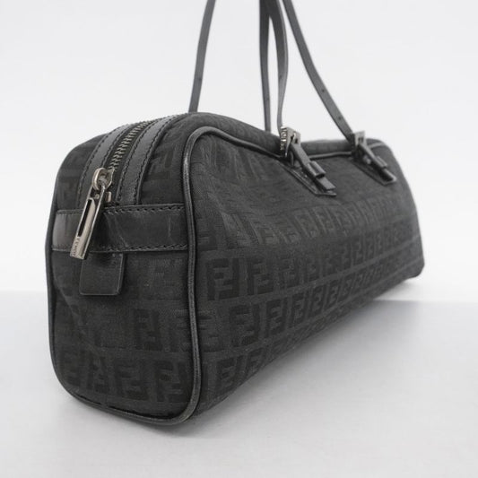 Fendi Handbag Zucchino Nylon Canvas Black Silver Hardware Women