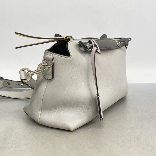 Fendi Handbag By-the-way Leather Gray Yellow Pink Silver Hardware 2way Bag