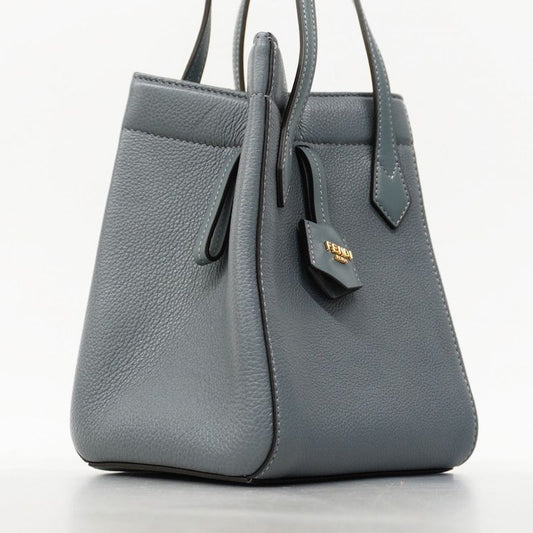 Fendi Shoulder Bag Origami Leather Gray Blue Gold Hardware Women