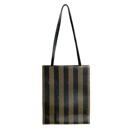 Fendi Pecan Tote Leather PVC Black Khaki Logo Unisex