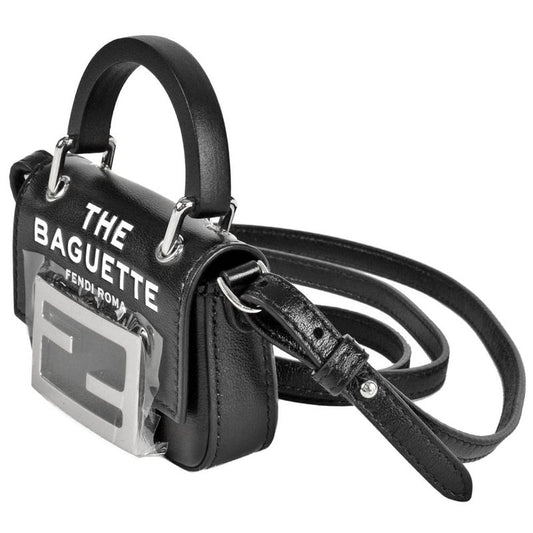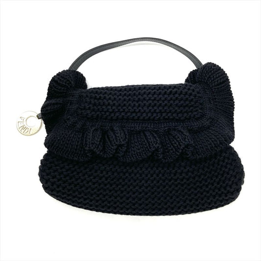 Fendi Handbag Wool Leather 8br445 Black With Charm Women