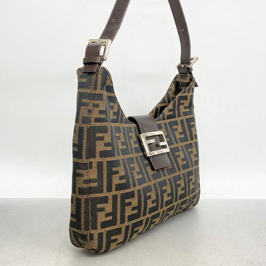 Fendi Shoulder Bag Zucca Nylon Canvas Brown Silver Hardware Women