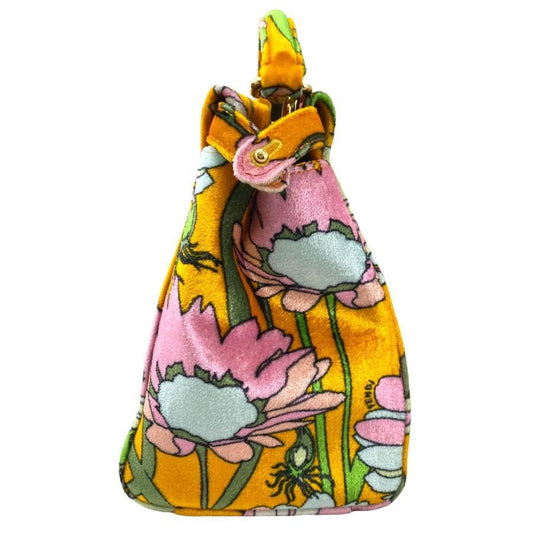 Fendi Peekaboo Iconic Velour Orange Yellow Shoulder Bag Handbag With