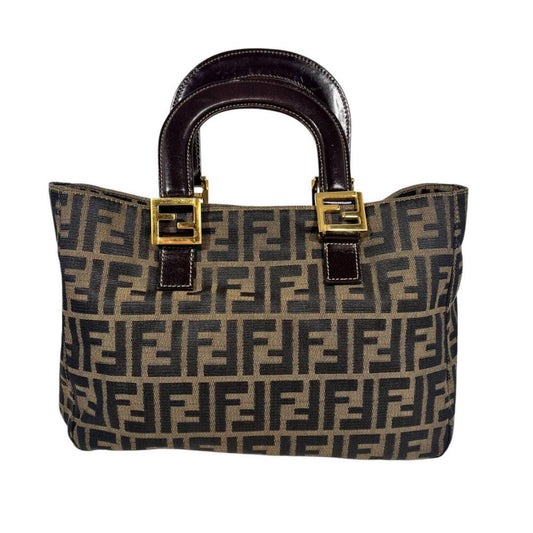 Fendi Zucca Pattern Etnico Brown Canvas/leather Shoulder Bag Handbag Tote Bag