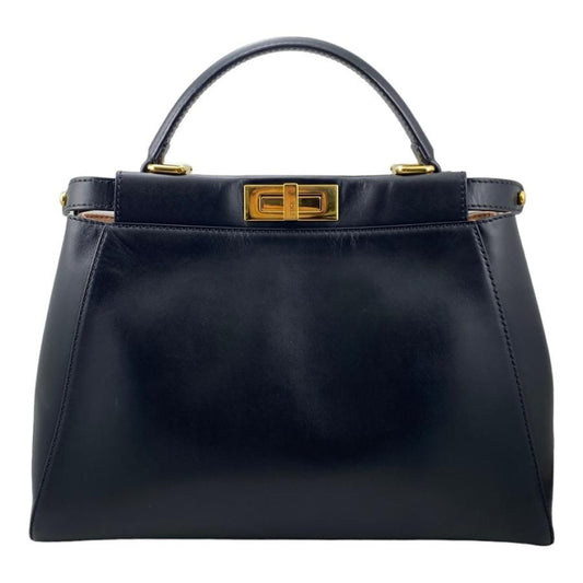 Fendi Peekaboo Regular Handbag 2WAY Shoulder Bag Crossbody Leather Black Black