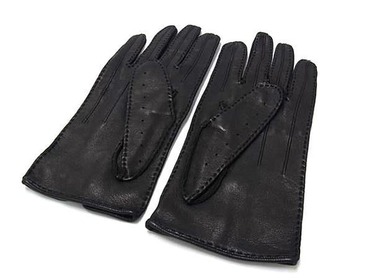 Hermes Sellier Lambskin Gloves Size 6 1/2 Women's Black Fb0801