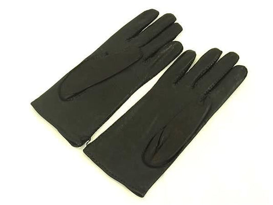 Hermes Lambskin Gloves Winter Gear Size 7 1/2 Women's Black Fr2055