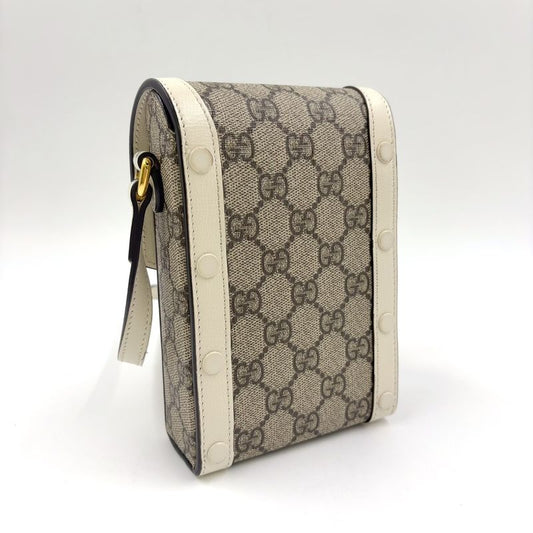 Gucci GG Supreme Horsebit 1955 Mini Bag Leather X PVC Beige X White Shoulder