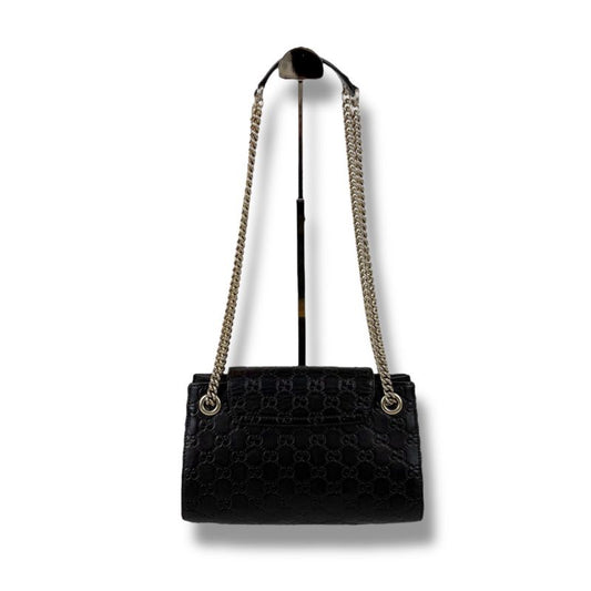 Gucci Chain Mini Shoulder Bag Sima Leather Black 2WAY Tassel Horsebit