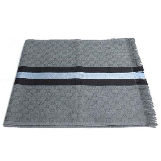 Gucci Sherry Line Scarf Gray/brown/sky Blue 147351 4g704 1469 Unisex Pre-owned
