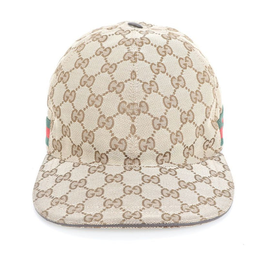 Gucci GG Canvas Sherry Line Baseball Cap Hat 0001-16 Leather Brown Men's