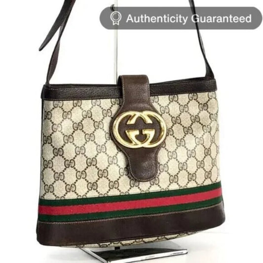 Authentic Gucci GG Supreme Web Canvas Sherry Messenger Bag Monogram Flap Tote