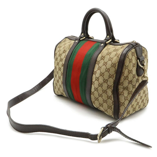 Gucci GG Canvas Sherry Line Handbag Mini Boston Bag 2WAY Shoulder Bag Leather