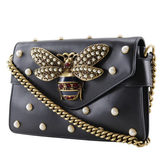 Gucci Broadway Chain Shoulder Pearl & Bee 453778 Calf Black Ladies Shoulder Bag