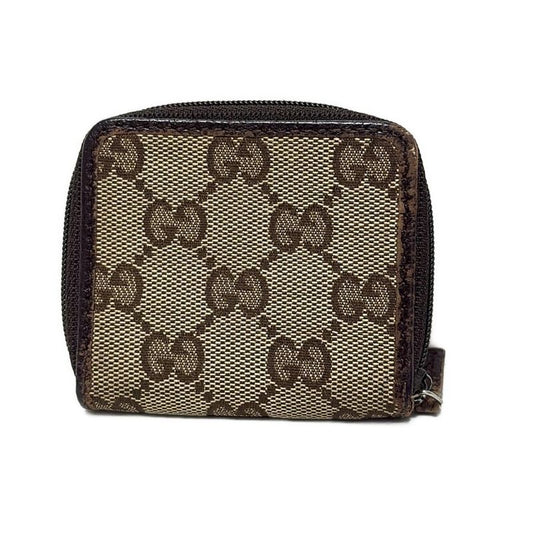 Gucci Coin Case Metal Bar GG Pattern 115255 Beige And Dark Brown Round Zipper