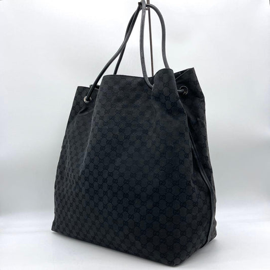 Large Capacity Gucci Tote Bag GG Canvas Silver Hardware Black