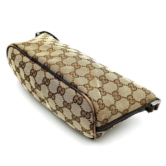 Gucci 07198 Handbag Accessory Pouch GG Canvas Leather Brown Beige Women