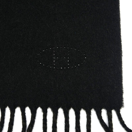 Hermes Fringe Scarf Evelyn Black Khaki Green Cashmere