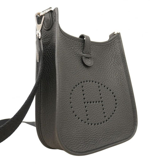 Hermes Shoulder Bag Evelyn TPM Taurillon Cles Mance Black Silver Hardware K