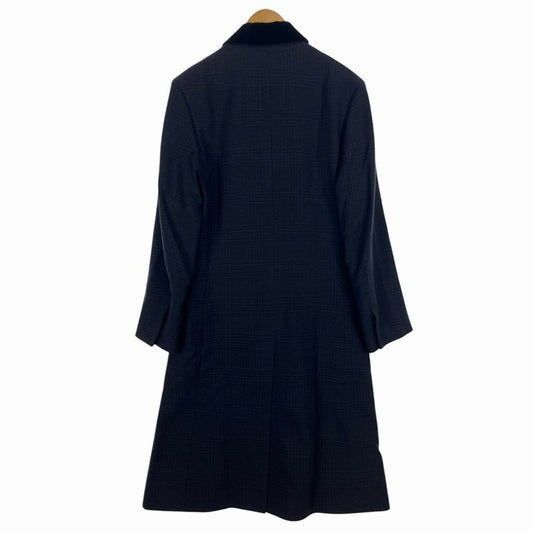 Hermes Chester Coat Long Shadow Glen Check Collar Velour 38 M Size Navy Blue
